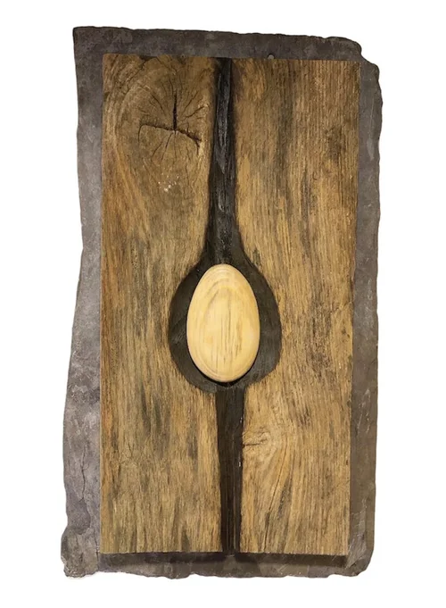 2020 16”x11”, Sculpted Californian Wildfire Wood and Welsh slate.